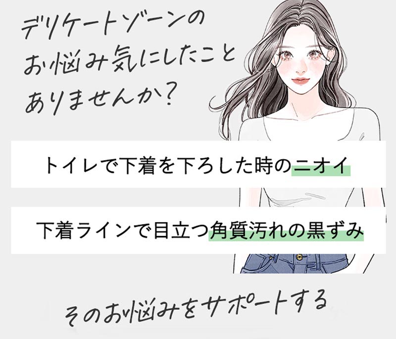 デリケートゾーンだけでなく、脇などのニオイが発生しやすい 箇所にもご使用いただいています。 |