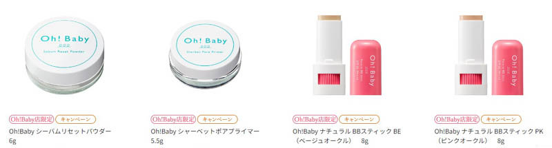 温泉水*コスメ“Oh!Babyシリーズ”のスキンケア・ベースメイクアイテム。